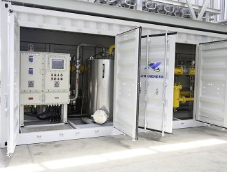 調(diào)壓計(jì)量撬是經(jīng)過(guò)主氣化器氣化后的氣體,由于等壓氣化壓力基本保持和儲(chǔ)罐壓力相近,一般用戶需求壓力是一個(gè)恒定的范圍內(nèi)的值,需要進(jìn)行調(diào)壓穩(wěn)壓。同時(shí)為了計(jì)量核算費(fèi)用或廠內(nèi)核算成本,對(duì)氣化后的LNG流量進(jìn)行計(jì)量,為了實(shí)現(xiàn)以上的功能組合在一起的裝置叫調(diào)壓計(jì)量撬。由矩形撬塊、調(diào)節(jié)匯管、控制閥、計(jì)量管、流量計(jì)、調(diào)節(jié)閥、調(diào)節(jié)管、過(guò)濾器、出氣管、進(jìn)氣匯管、進(jìn)氣口、出氣匯管、排污管和安全放氣閥組成。有的裝置內(nèi)需要加入加臭系統(tǒng)。